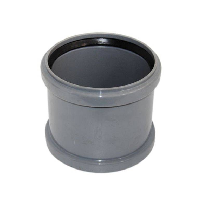 Муфта – фитинг с резиновыми уплотнительными кольцами для монтажа конструкций канализационных труб где отсутствуют раструбы.