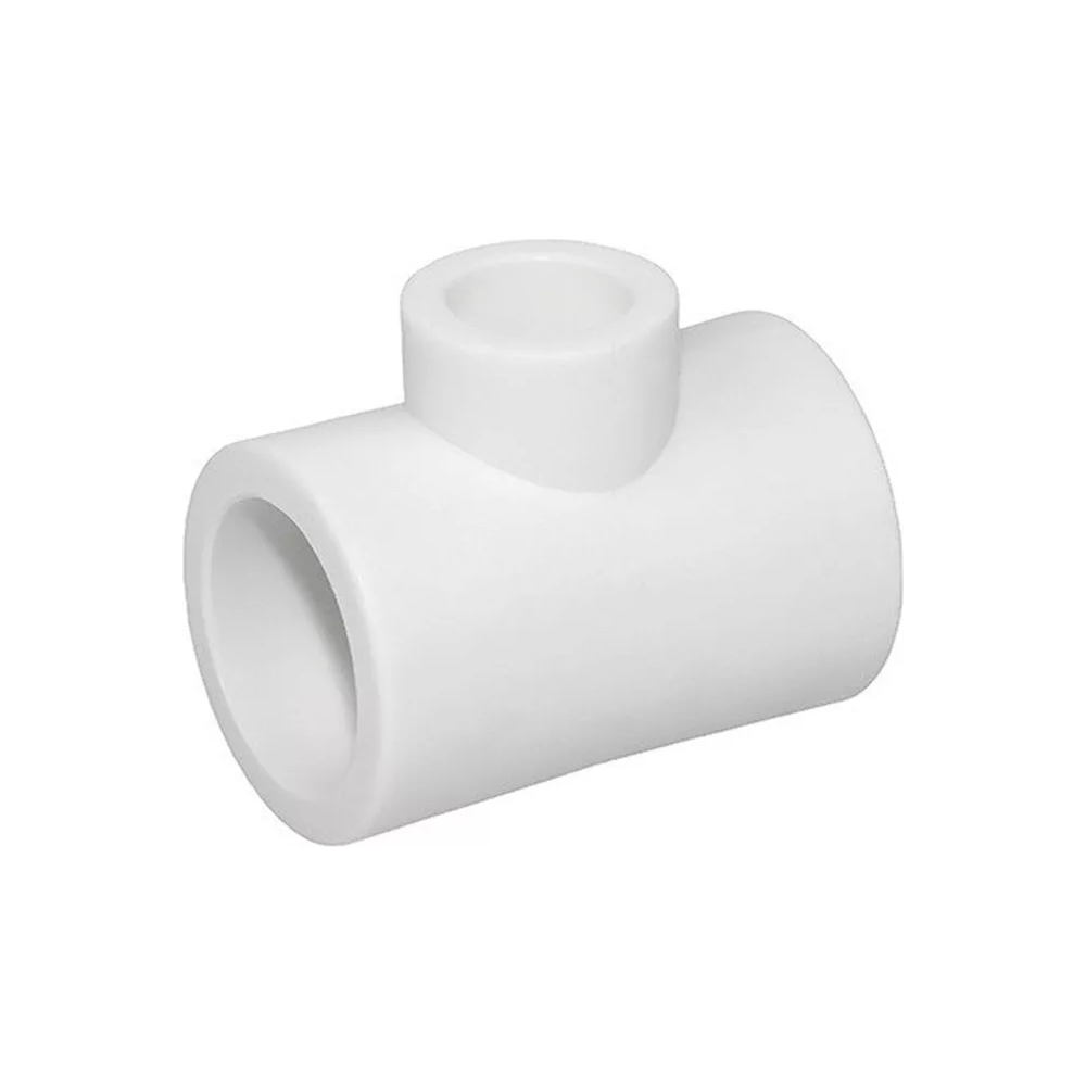 Тройник с толщиной стенки 9,5 мм выполнен из белого полипропилена
