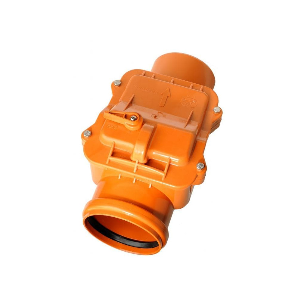 Клапан обратный канализационный устанавливается строго горизонтально - либо в подвале здания (перед выходом внутренней канализационной магистрали во внешнюю), - либо в приямке снаружи здания. Таким образом, клапан канализационный отделяет внутреннюю канализационную сеть здания от внешней канализационной сети. Входной и выпускной патрубки клапана предназначены для соединения с любой канализационной раструбной трубой из ПП или ПВХ. Если для канализации применяются стальная или чугунная безраструбная труба, необходимо использовать переходник с ПП/ПВХ на Чугун/Сталь.