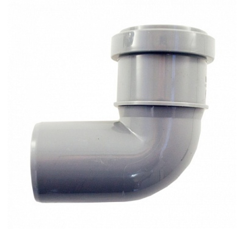 Отвод канализационный 50 х 90* имеет угловую конструкцию; с одной стороны раструб с уплотнительным кольцом диаметром 50 мм, с другой стороны часть отвода заходит в другой раструб. Отвод часто применяется в конструкции сливов для стиральных и посудомоечных машинах, а также для малых сливов.