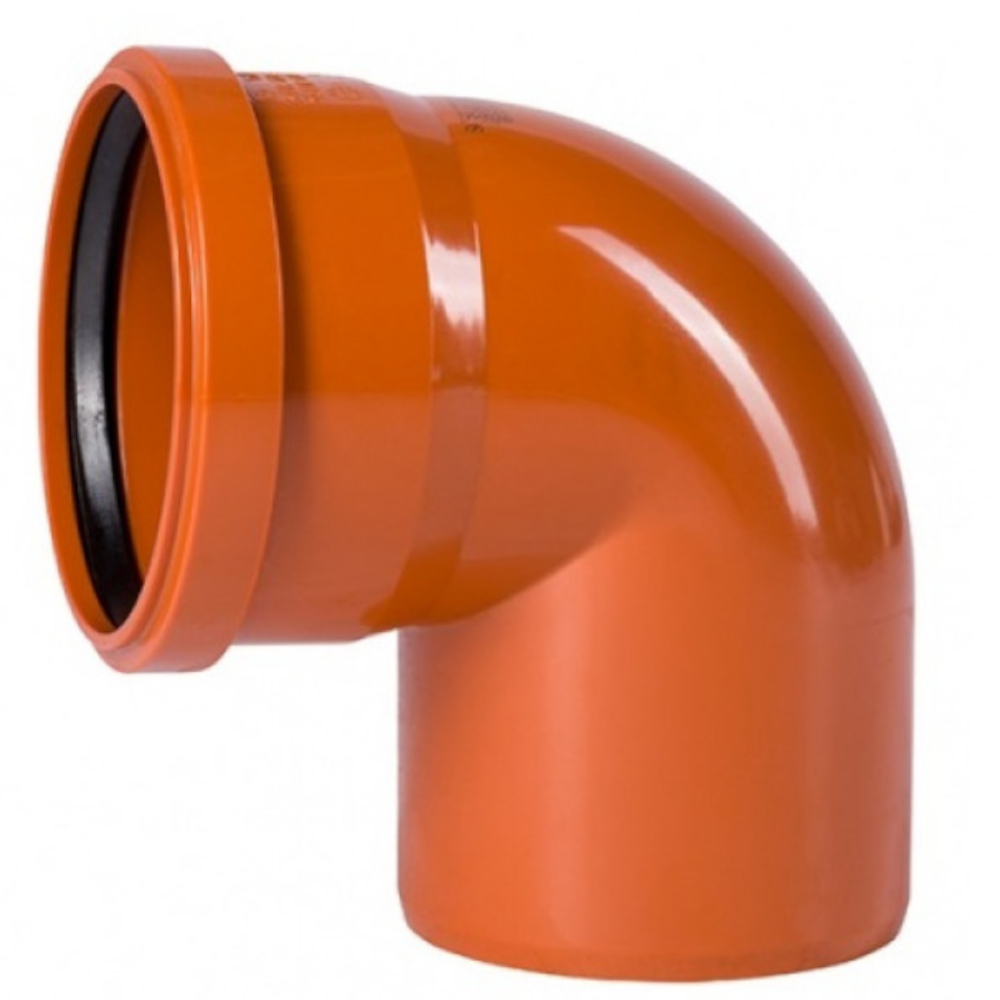 Отвод для канализационной трубы ПВХ применяется для плавного изменения направления движения потока жидкости в трубопроводе. Конструктивно имеет раструб под соединение с помощью резинового уплотнительного кольца с одной стороны и гладкий конец со снятой фаской с другой.