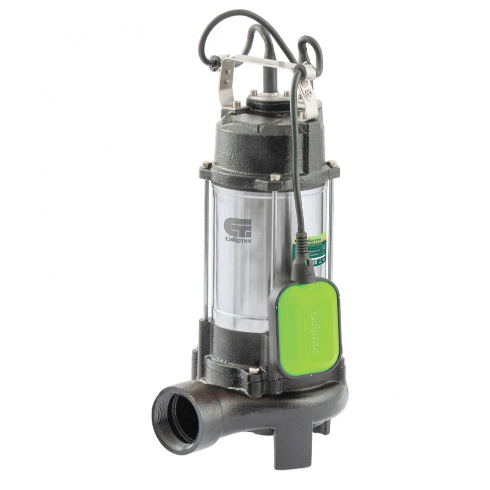 Насос Фекальный СФН1100-Н, 1100 Вт, напор 10 м, 18000 л/ч, нож// Сибртех, забор воды нижний, остаточный уровень воды 35 мм.