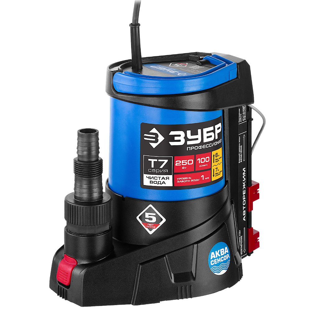 Насос с минимальным уровнем откачки, Профессионал (НПЧ-Т7-250) ЗУБР АкваСенсор 250 Вт, Дренажный