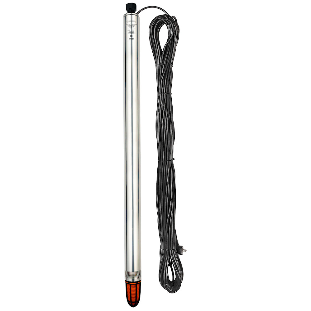 Макс.расход 55 л/мин. Макс. напор составляет 100м водяного столба, т.е. при закрытом кране насос развивает давление 10бар. Корпус выполнен из нержавеющей стали высокого качества и не подвержен коррозии. Верхняя часть насоса оснащена двумя проушинами для подвешивания и имеет патрубок для подключения напорной магистрали. Так же из верхней крышки выходит водостойкий электрокабель. Асинхронный электродвигатель с короткозамкнутым ротором оборудован термореле для защиты от перегрева, которое срабатывает только при аварийном режиме. Оно рассчитано на многократное число срабатываний. Внешний вид, цветовая гамма, технические характеристики товара и комплектность могут отличаться от реальных,уточняйте сведения на момент покупки и оплаты.