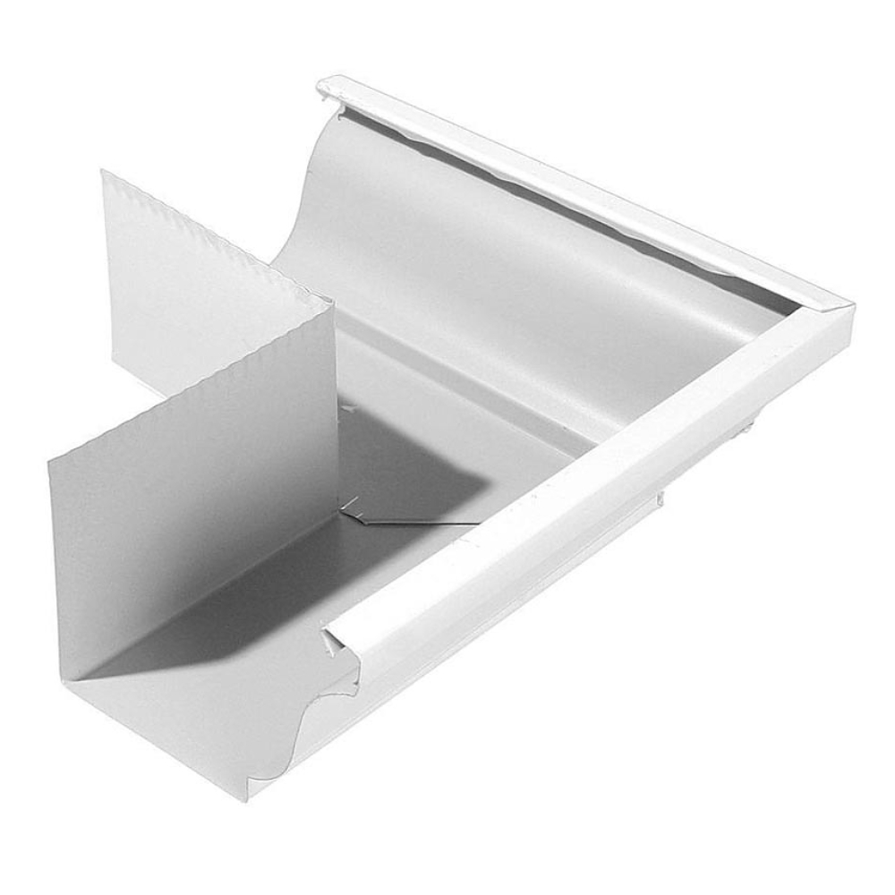 Металлическая водосточная система Угол желоба наружный 120х86 (ПЭ-01-9003-0.5) выполнена из стали машинной оцинковки. В качестве защитного барьера от осадков, солнечного света, механических воздействий применено покрытие Полиэстер.